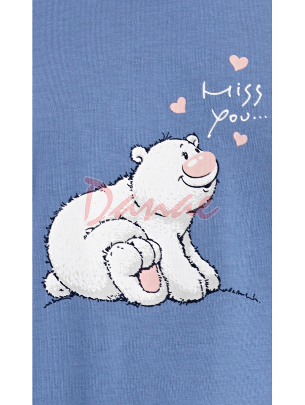 Tričko s dlouhým rukávem, okrouhlý výstřih, vepředu medvídek a nápis Miss you.