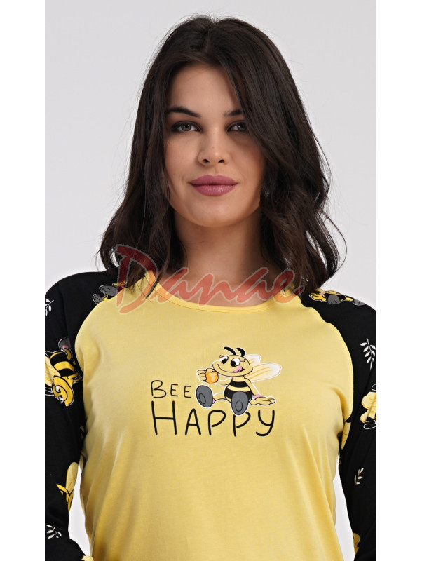 Triko s dlouhým rukávem, okrouhlý výstřih, zdobeno včelkou, nápis Bee Happy.