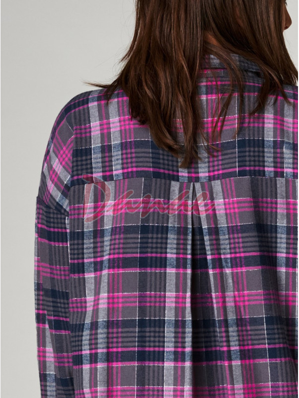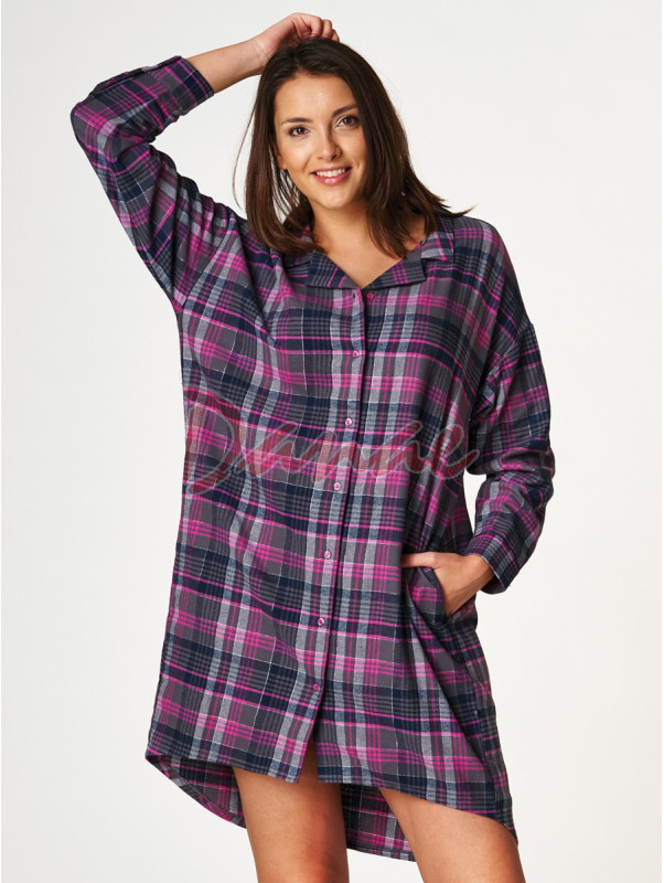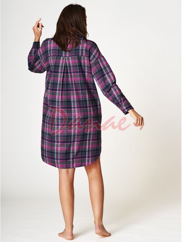 Károvaná flanelová noční košile, s dlouhým rukávem, vepředu na rozepínání, po celé délce.