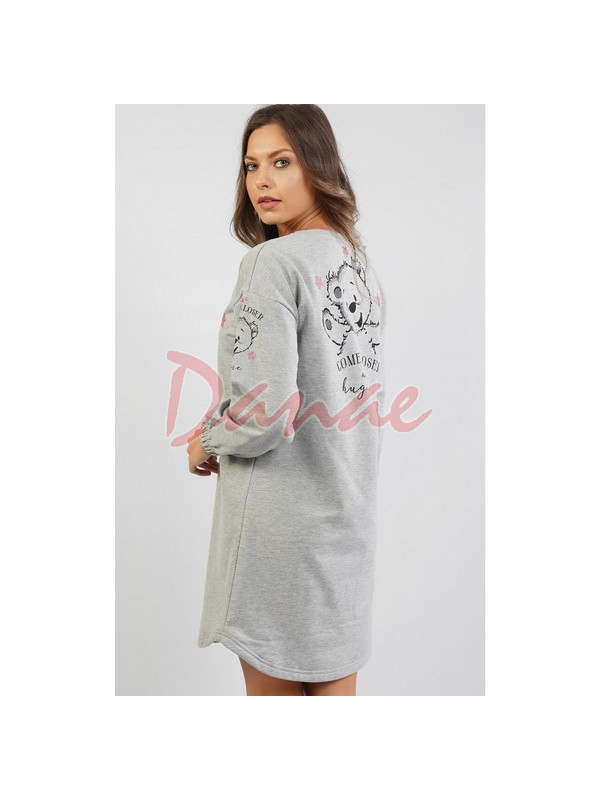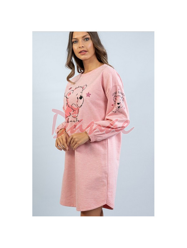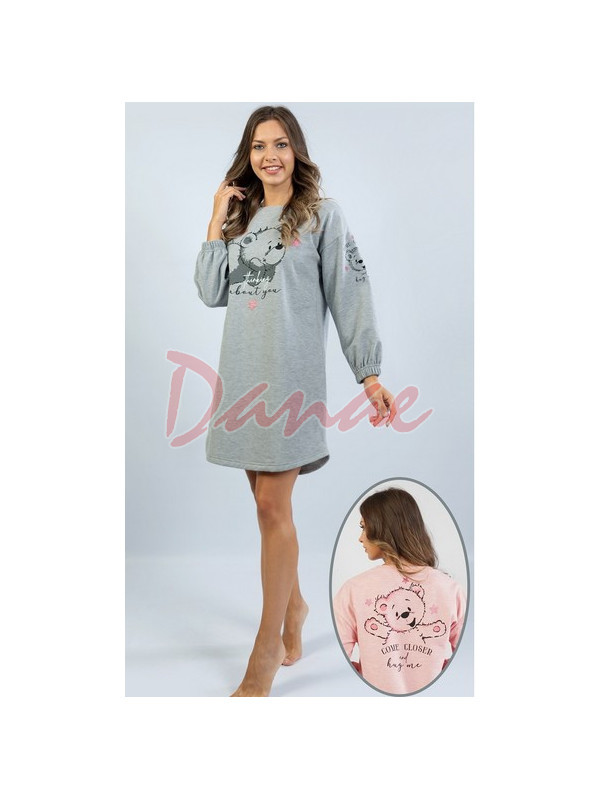 Dámská noční košile, ze zateplené bavlny, s okrouhlým výstřihem, dlouhý rukáv je zakončený gumkou v tunelu.