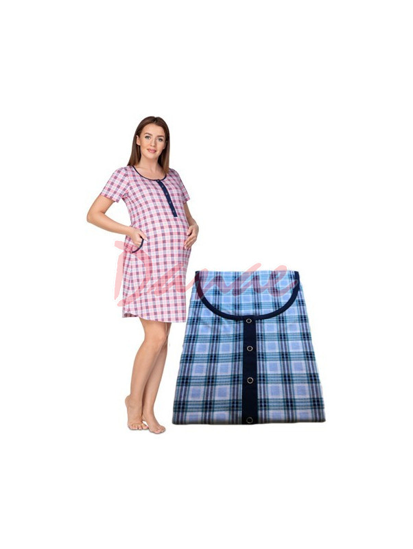 Károvaná dámská noční košile Regina, s praktickým, hluboce rozepínatelným výstřihem na druky.