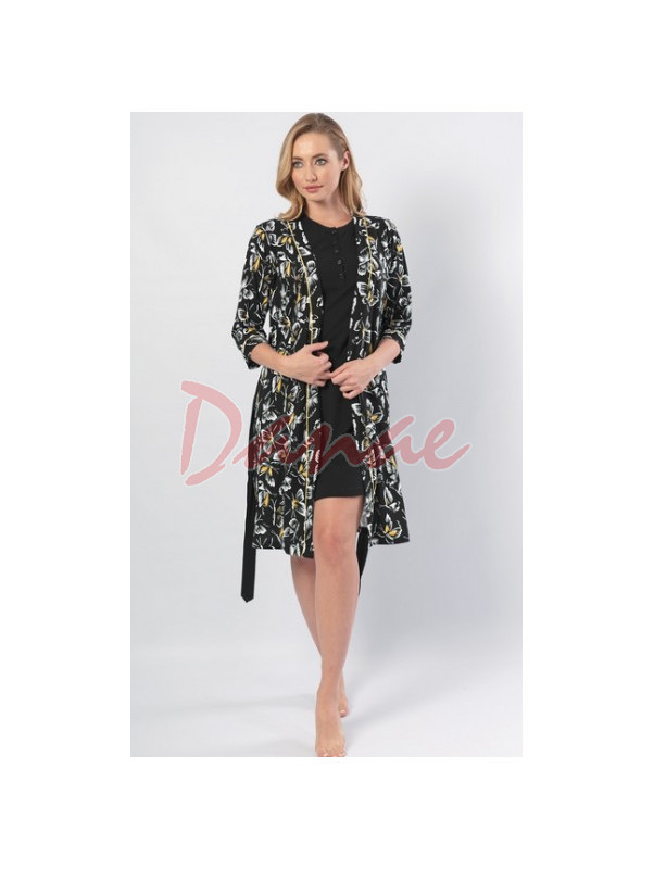 Souprava tenký župan a noční košile Motýli, na doma, cestování, do nemocnice či porodnice.