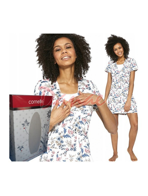 Model, při kterém byl kladen důraz, aby se těhotná a kojící maminka cítila pohodlně. Použitý je přírodní bavlněný materiál, mimořádně šetrný k pokožce a příjemný na dotek. Osvědčený střih, zabezpečí volnost pohybu, praktický výstřih, ulehčí kojení děťátka. Decentní květový motiv, baleno v krabici Cornette.