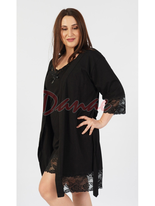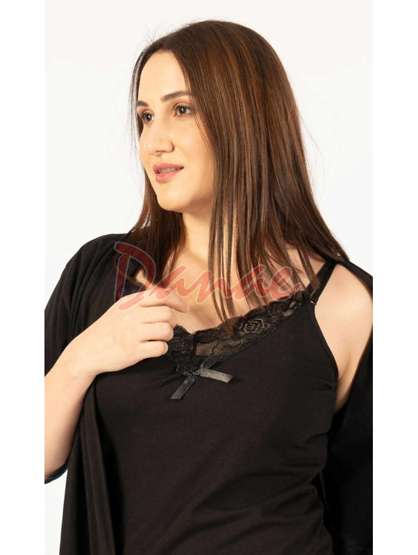 Nádherná dámská bavlněná souprava s krajkou - noční košilka na tenká ramínka a tenký župan.