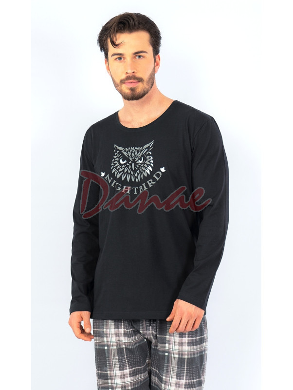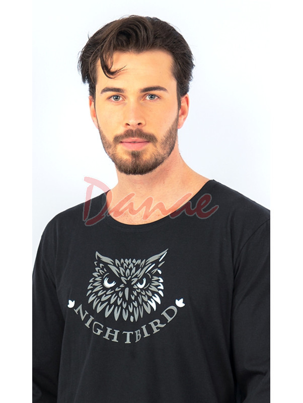 Tričko, s dlouhým rukávem a okrouhlým výstřihem, na přední straně potisk - hlava sovy a nápis: Nightbird.