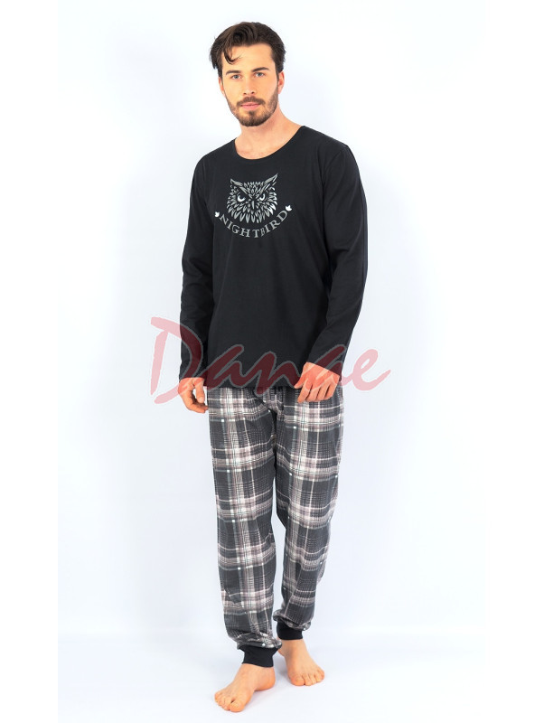Kalhoty jsou dlouhé, kárované, v pase do gumy, na spodu zakončeny patentem.