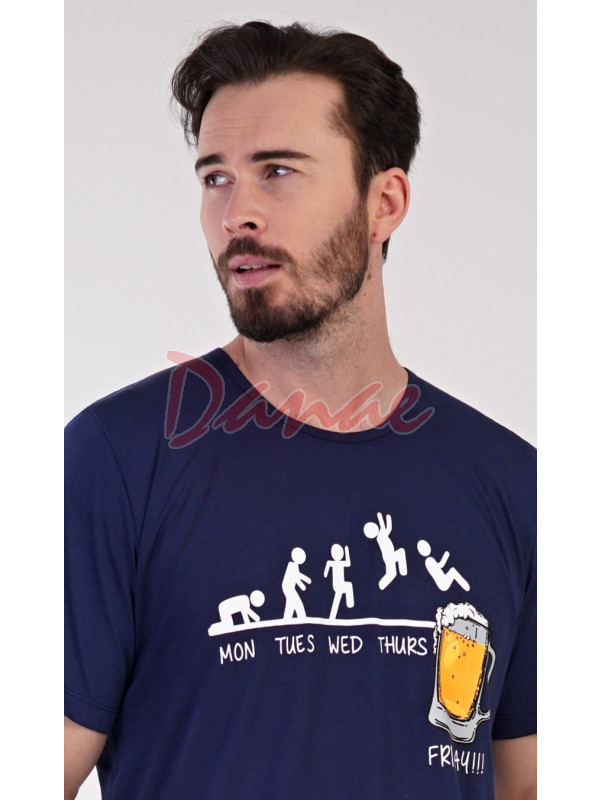 Jednobarevné tričko s dlouhým rukávem, kulatý výstřih, humorní potisk, jak se blíží konec týdne a sklenice piva