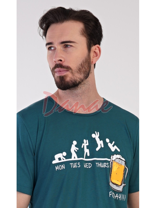 Jednobarevné tričko s dlouhým rukávem, kulatý výstřih, humorní potisk, jak se blíží konec týdne a sklenice piva
