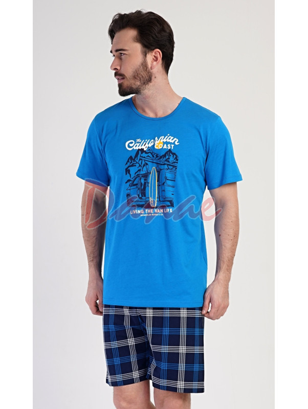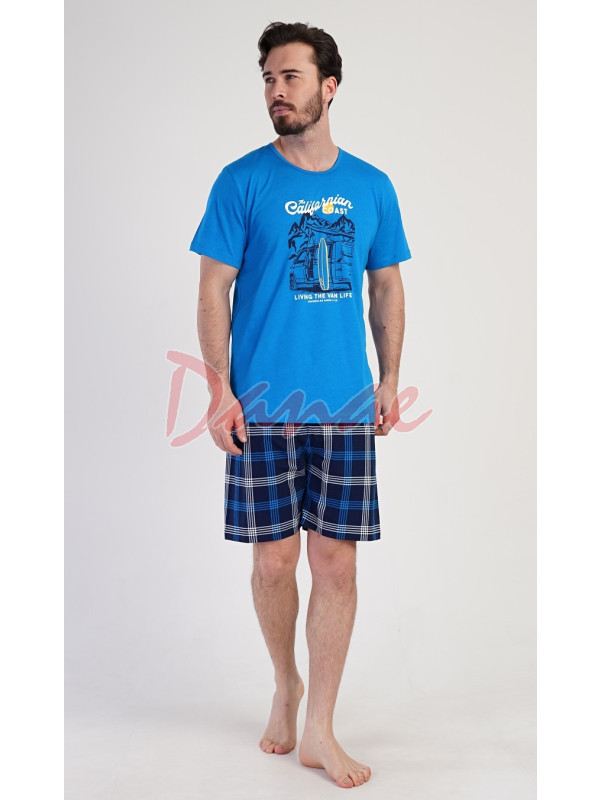 Tričko s krátkým rukávem, vepředu je obrázek obyťáku s prknem, nápis The Californian Coast.