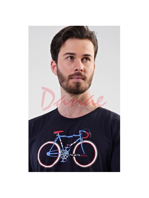 Tmavězelená noční košile, s krátkým rukávem, okrouhlý výstřih, má na přední části potisk - retro kolo a nápis s vtipnou narážkou: I´m not old, I´m stylish - Nejsem starý, jsem stylový, co se může vztahovat tak na kolo, jak na majitele noční košile.