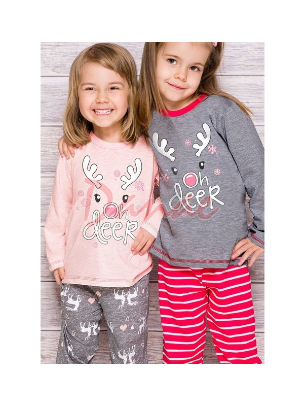 Jednobarevný vrchní díl, tričko je vepředu s potiskem: sob s červeným nosem, nápis: Oh deer, kolem poletují sněhové vločky.